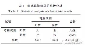 例如臨床試驗(yàn)采用XX 方法的試驗(yàn)設(shè)計(jì)。將樣本編碼,采用對(duì)照試劑和考核試劑同時(shí)進(jìn)行檢測(cè),對(duì)不符標(biāo)本進(jìn)行復(fù)檢。根據(jù)對(duì)照試劑檢測(cè)結(jié)果將標(biāo)本分為陽性組和陰性組,將考核試劑檢測(cè)結(jié)果與其進(jìn)行比較分析, 用以評(píng)價(jià)考核試劑的臨床應(yīng)用性能,并對(duì)有效性及安全性提供重要的依據(jù)。